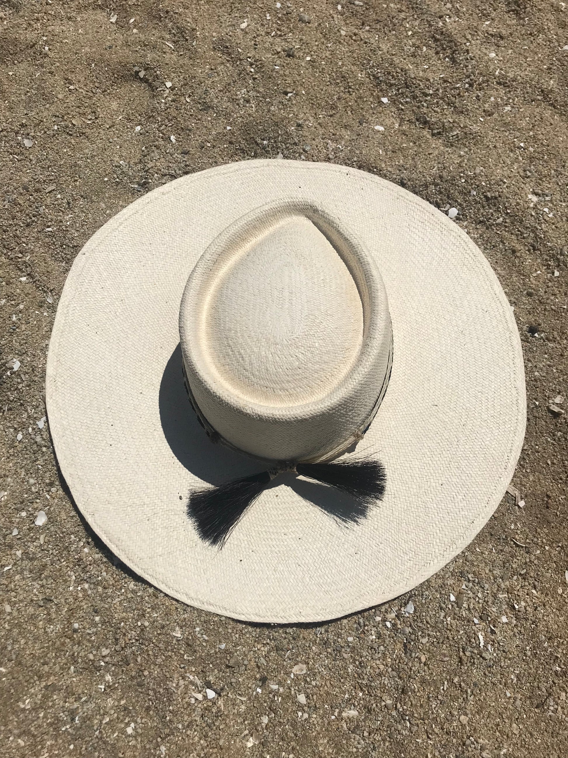 Traditional equestrian hat handwoven from toquilla palm in Peru (hatband not included). Crown 10 cm. Brim 10 cm.